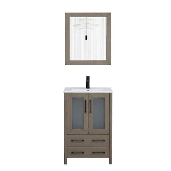 24 in. W x 18.1 in. D x 35.8 in. H Single Basin Driftwood Gray Bath Vanity with White Ceramic Top and Mirror