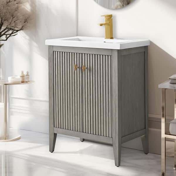 24 in. W x 18.5 in D x 34 in. H Single Sink Bath Vanity Cabinet in Linear Driftwood Gray with Ceramic Top