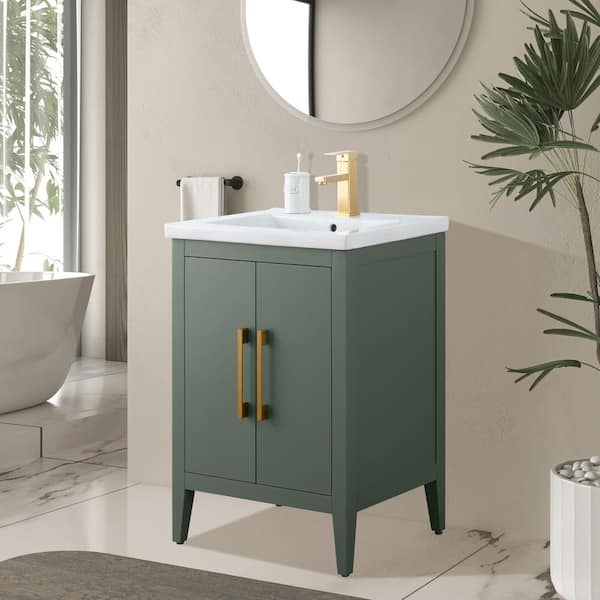 24 in. W x 18.5 in D x 34 in. H Single Sink Bathroom Vanity Cabinet in Vintage Green with Ceramic Top