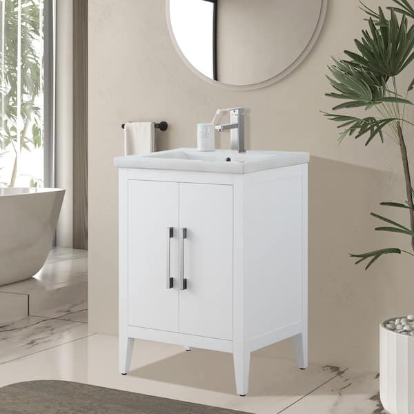 24 in. W x 18.5 in D x 34 in. H Single Sink Bathroom Vanity Cabinet in White with Ceramic Top