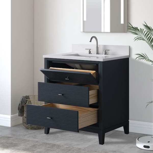 30 in. W Single Sink Freestanding Vintage Spruce Blue Bath Vanity Cabinet with Ariston White Engineered Marble Top