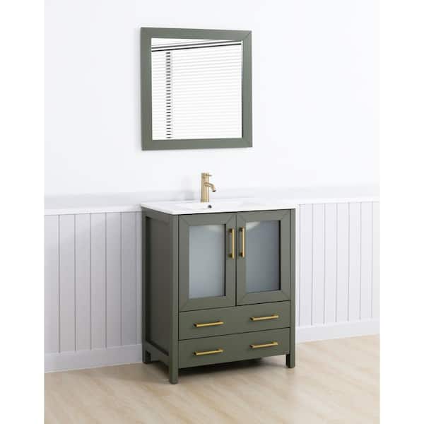 30 in. W x 18 in. D x 36 in. H Vintage Green Bath Vanity with White Ceramic Top and Mirror