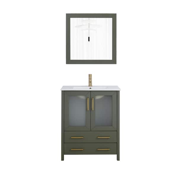 30 in. W x 18 in. D x 36 in. H Vintage Green Bath Vanity with White Ceramic Top and Mirror