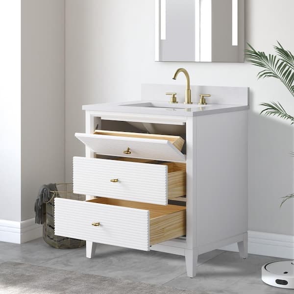 30 in. W x 34 in. H Single Sink White Bath Vanity Cabinet with Arabescato White Engineered Marble Top