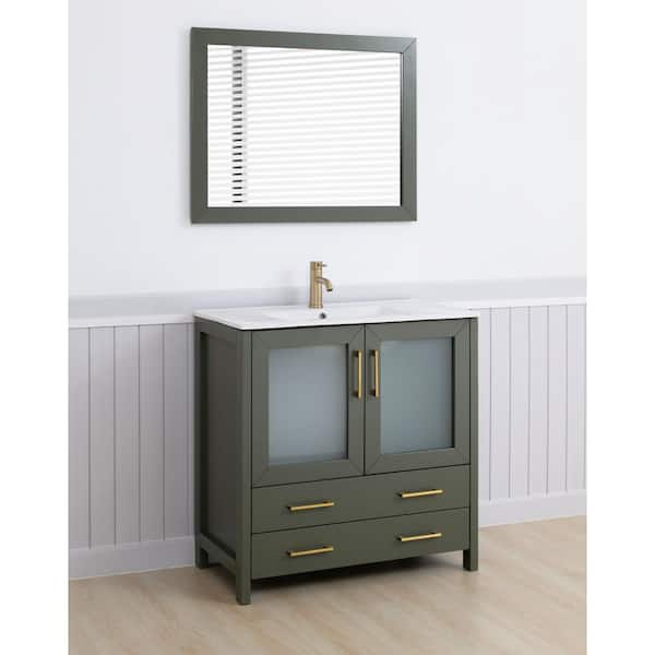 36 in. W x 18 in. D x 36 in. H Vintage Green Bath Vanity with White Ceramic Top and Mirror