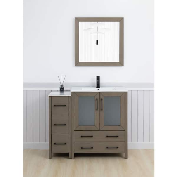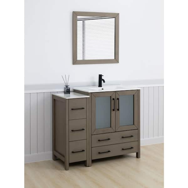42 in. W x 18 in. D x 36 in. H Driftwood Gray Bath Vanity with White Ceramic Top and Mirror