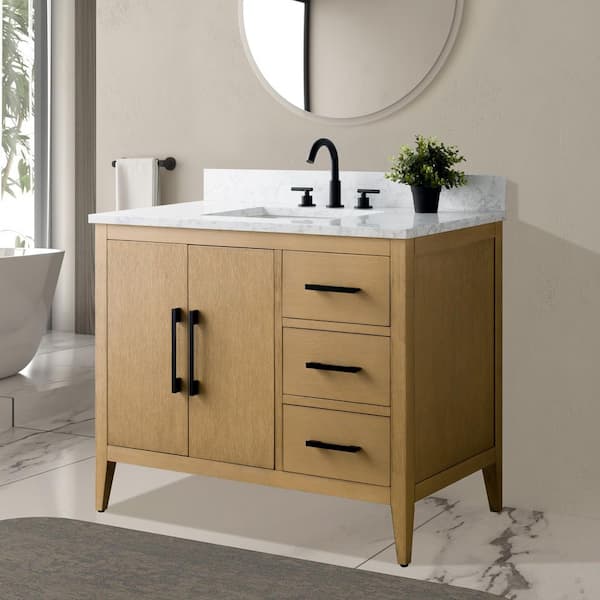 42 in. W x 22 in. D x 34 in. H Single-Sink Bathroom Vanity in Natural Oak with Engineered Marble Top in Arabescato White