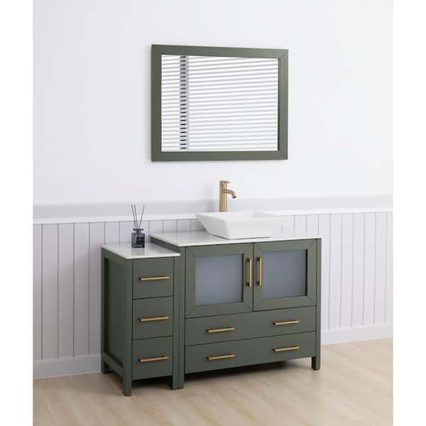 48 in. W Single Basin Vintage Green Bath Vanity with White Engineered Marble Top and Mirror