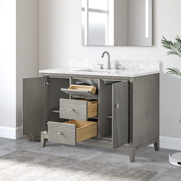 48 in. W Single Sink Freestanding Driftwood Gray Bath Vanity Cabinet with Arabescato White Engineered Marble Top