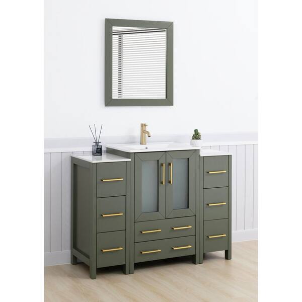 48 in. W x 18.1 in. D x 35.8 in. H Single Basin Vintage Green Bath Vanity with White Ceramic Top and Mirror