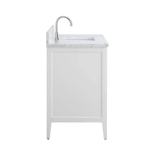 48 in. W x 22 in. D x 34 in. H Single Sink Bathroom Vanity Cabinet in White with Engineered Marble Top