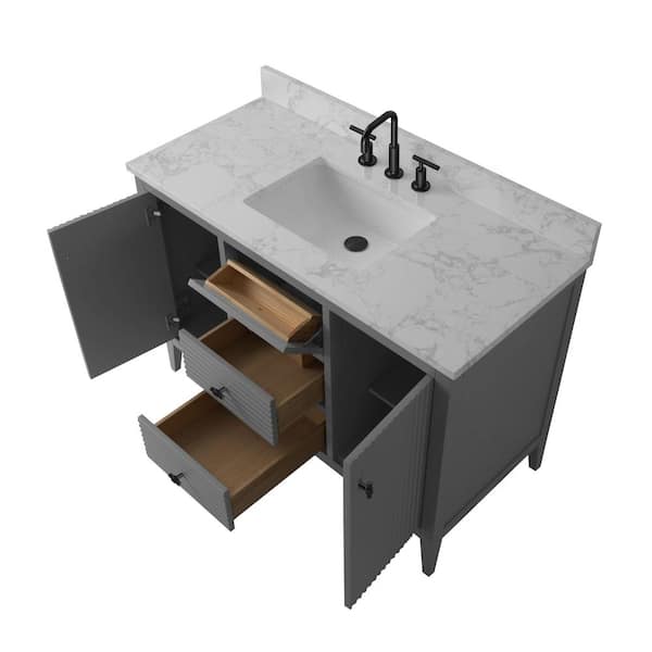 48 in. W x 22 in D x 38 in. H Single Sink Bath Vanity Cabinet in Linear Gray with White Engineered Marble Top