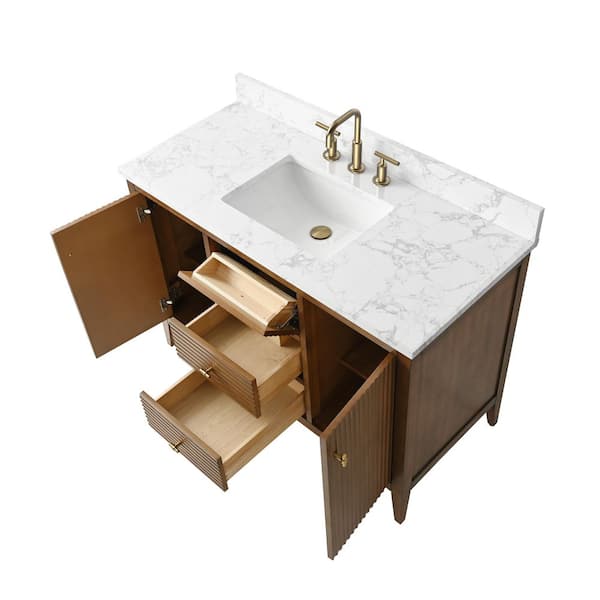 48 in. W x 22 in D x 38 in. H Single Sink Bathroom Vanity Cabinet in Linear Walnut with White Engineered Marble Top