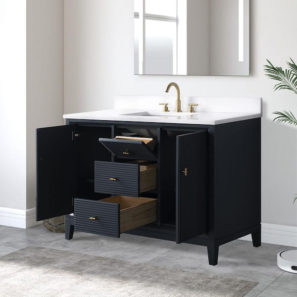 • Engineered marble countertop offers a sleek look
