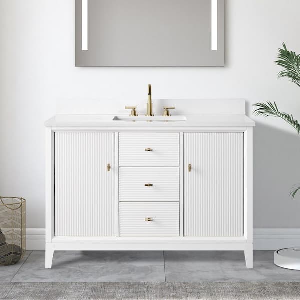 48 in. W x 34 in. H Single Sink White Bath Vanity Cabinet with Arabescato White Engineered Marble Top