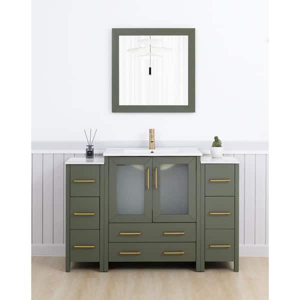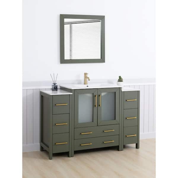 54 in. W x 18 in. D x 36 in. H Vintage Green Bath Vanity with White Ceramic Top and Mirror