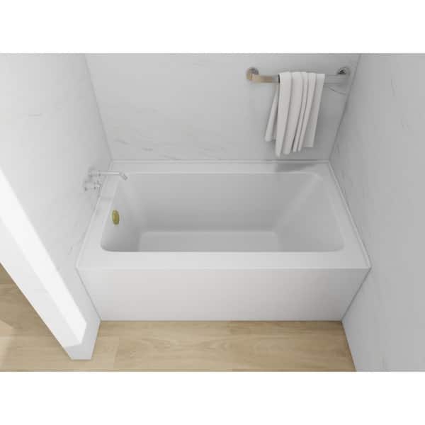 54 in. x 32 in. Acrylic Alcove Skirt Soaking Bathtub with Left Overflow and Drain in White/Titanium Gold