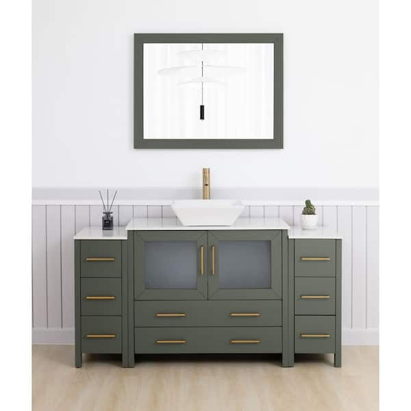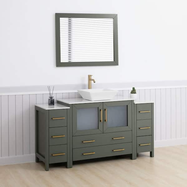60 in. W Single Basin Vintage Green Bath Vanity with White Engineered Marble Top and Mirror