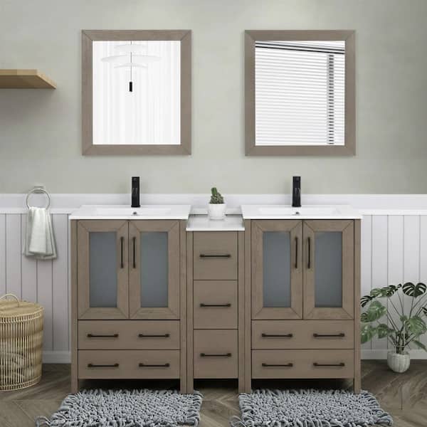 60 in. W x 18.1 in. D x 35.8 in. H Double Basin Driftwood Gray Bath Vanity with White Ceramic Top and Mirror