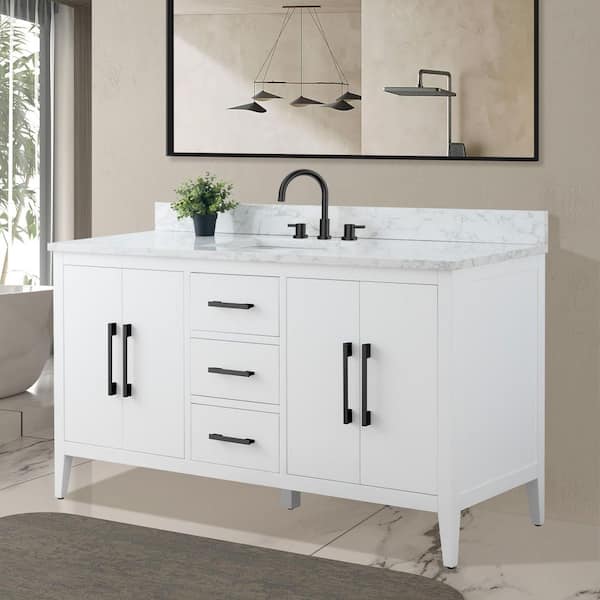 60 in. W x 22 in. D x 34 in. H Single Sink Bathroom Vanity Cabinet in White with Engineered Marble Top in White