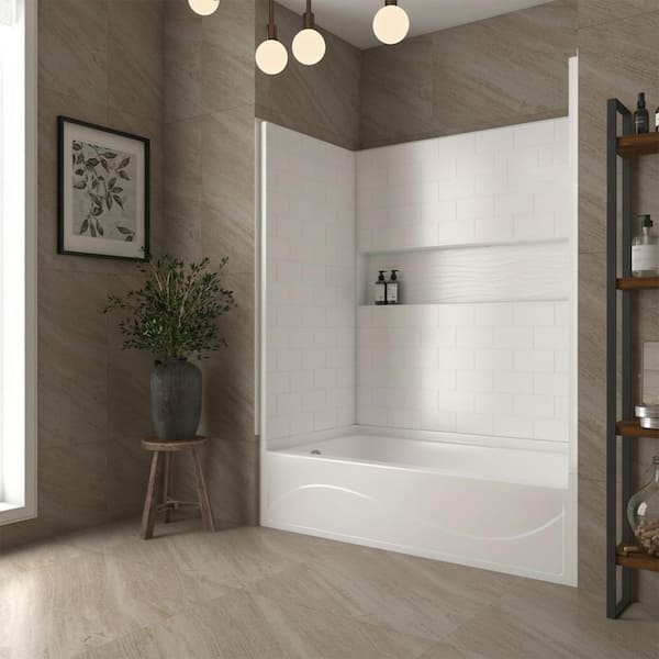 60 in. x 32 in. 4-Piece Direct-to-Stud Alcove Tub Surround With Left Drian Soaking Bathtub Combo in White