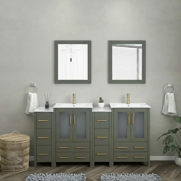 72 in. W x 18.1 in. D x 35.8 in. H Double Basin Vintage Green Bath Vanity with White Ceramic Top and Mirror