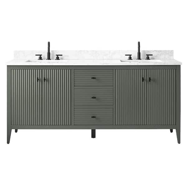 72 in. W x 22 in D x 38 in. H Double Sink Bathroom Vanity Cabinet in Linear Vintage Green with Engineered Marble Top