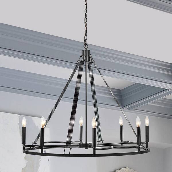 8 -Light Wagon Wheel Candle Style Chandelier in Classic Black