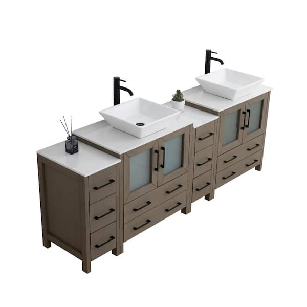 84 in. W Double Basin Driftwood Gray Bath Vanity with White Engineered Marble Top and Mirror