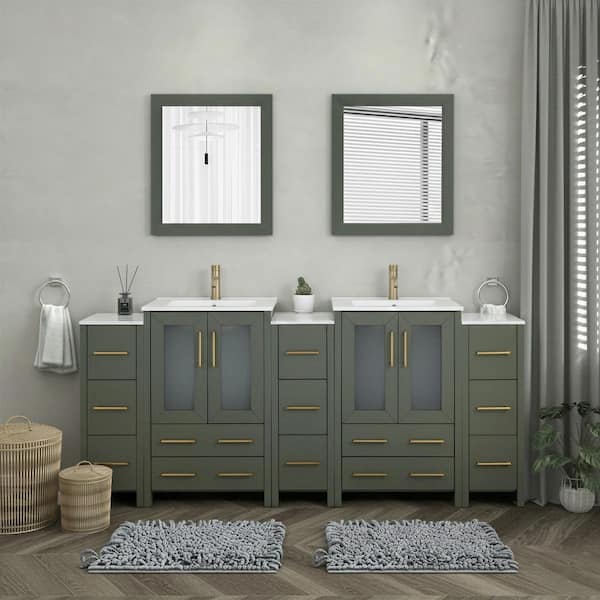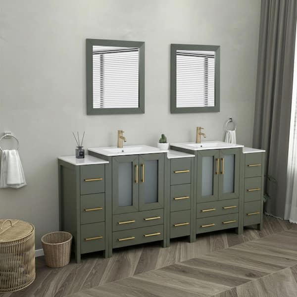 84 in. W x 18.1 in. D x 35.8 in. H Double Basin Vintage Green Bath Vanity with White Ceramic Top and Mirror