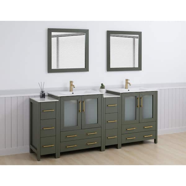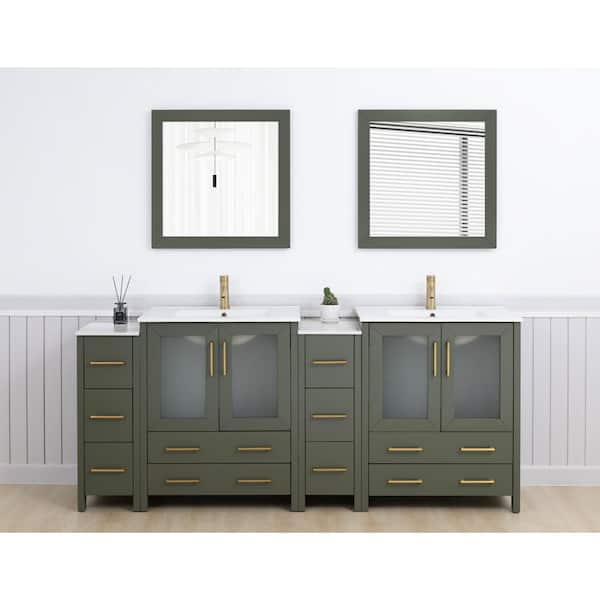 84 in. W x 18 in. D x 36 in. H Vintage Green Bath Vanity with White Ceramic Top and Mirror
