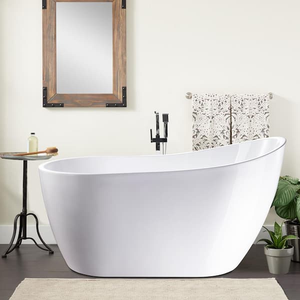 Honfleur 54 in. Acrylic Flatbottom Freestanding Bathtub in White/Titanium Gold
