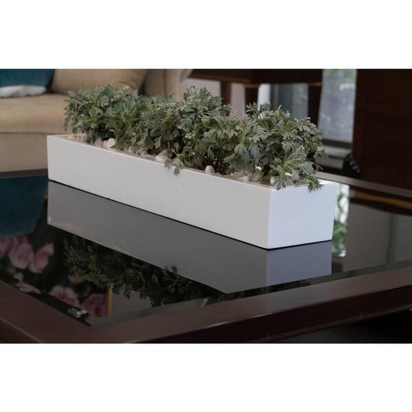 Carlo 3.75 in. x 6 in. x 31.5 in. Glossy White Fiberstone Planter