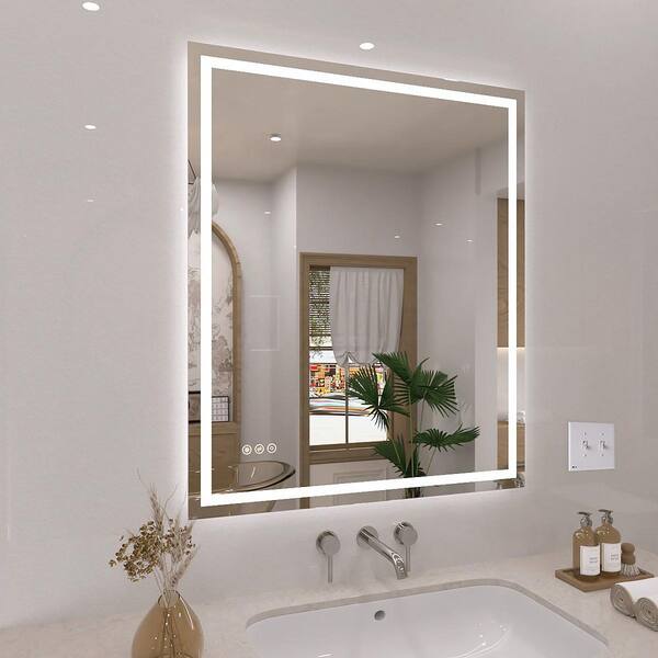 Vela 30 in. W x 36 in. H Rectangular Frameless LED Light Anti-Fog Wall Bathroom Vanity Mirror in Polished Crystal