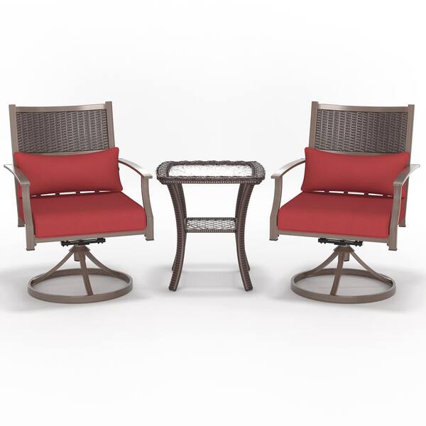 3 Pieces Swivel Rocker Outdoor Chairs Set, Patio Dining Chairs with Red Thickened Cushions&Glass Top Table