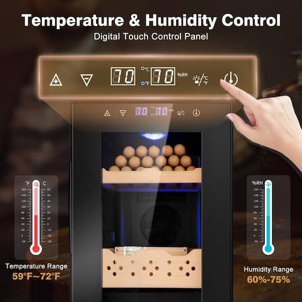 10.24 in. 25L Single Zone Electric Humidor, 170-Counts Cigar Humidor Cabinet, Beverage and Wine Cooler in Black