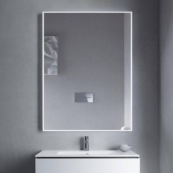 Velt XL 30 in. x 39.5 in. Large Rectangular White Metal Framed Wall Mount Bathroom Vanity Mirror