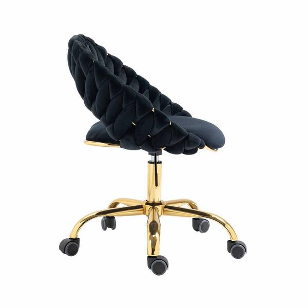 Velvet Woven Cutout Soft Back Adjustable Height Swivel Ergonomic Computer Chair in Black with 5-Wheels