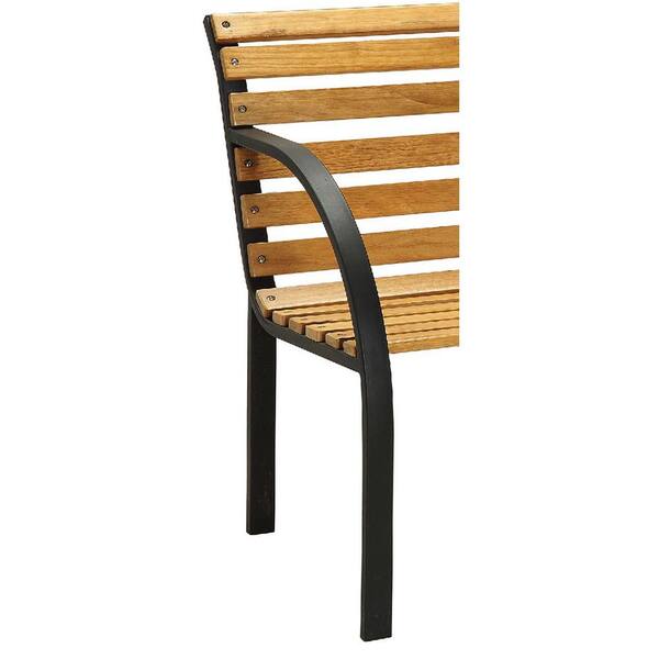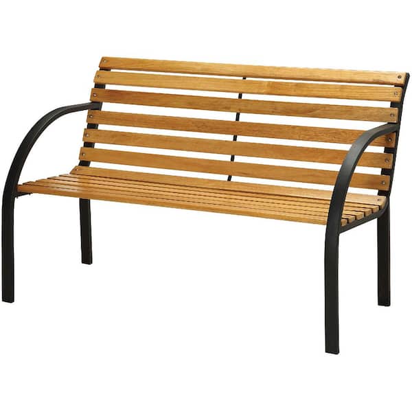 Dumas II 45 in. 2-Person Natural Oak Wood and Cast-Iron Outdoor Bench