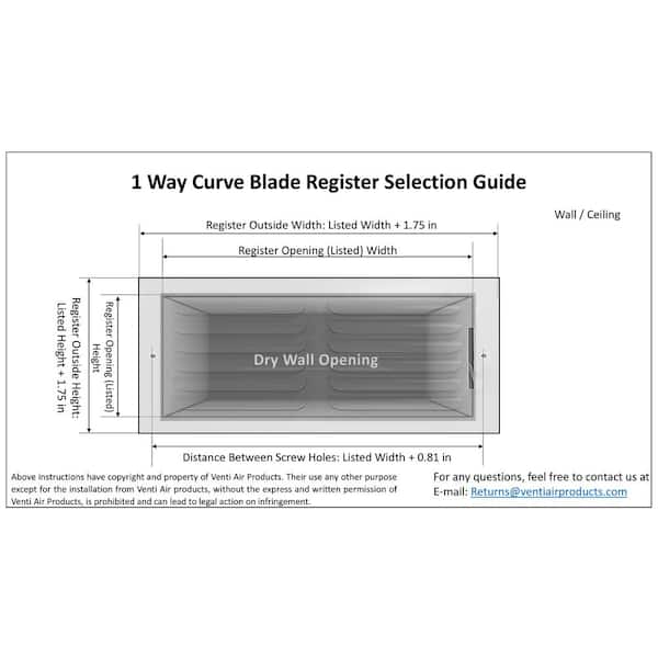 12 in W x 6 in H Steel for Ceiling or Sidewall White 1-Way Curve Blade Register