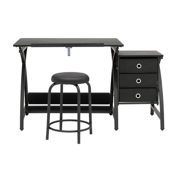 Venus Craft Adjustable Tabletop with Storage and Stool in Black ( 2-Piece)