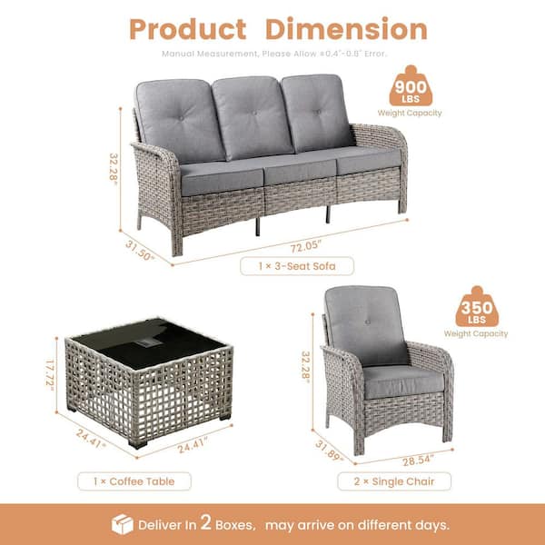 Vera 4-Piece Wicker Patio Conversation Seating Sofa Set with Dark Gray Cushions and a Led Table