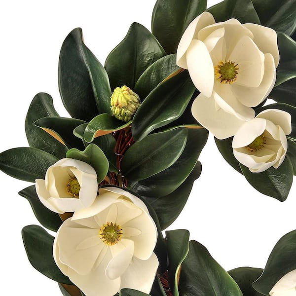 Veranda 24 in. White Artificial Magnolia Wreath