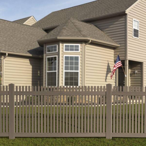 5 in. x 5 in. x 6 ft. Cedar Grove Chestnut Brown Vinyl Picket Fence Line Post