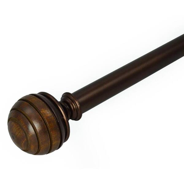 72 in. - 144 in. Adjustable Single Curtain Rod in Bronze with Ridges Finial