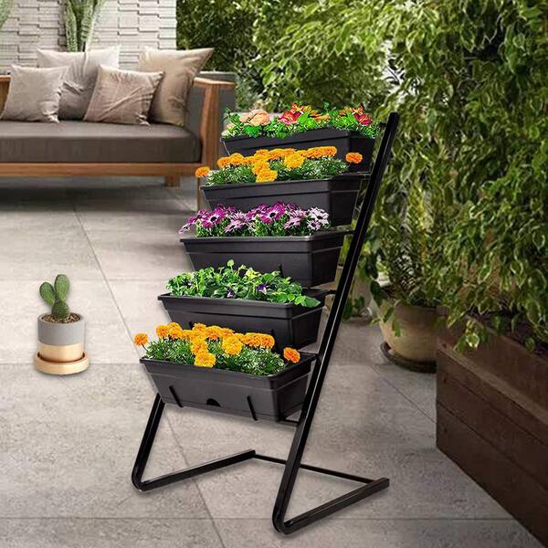 Vertical 41.3 in. H x 21.6 in. W x 19.7 in. L Black Metal with Plastic Container Boxes 5-Levels Raised Garden Bed