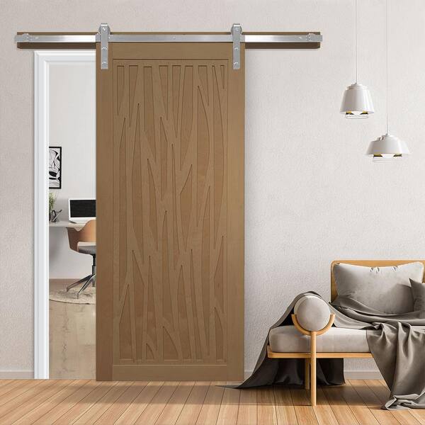30 in. x 84 in. Howl at the Moon Sands Wood Sliding Barn Door with Hardware Kit in Stainless Steel