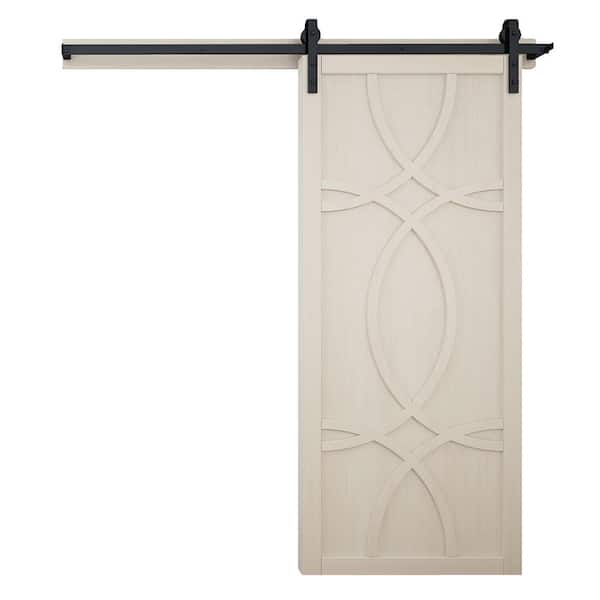 30 in. x 84 in. The Hollywood Parchment Wood Sliding Barn Door with Hardware Kit in Stainless Steel