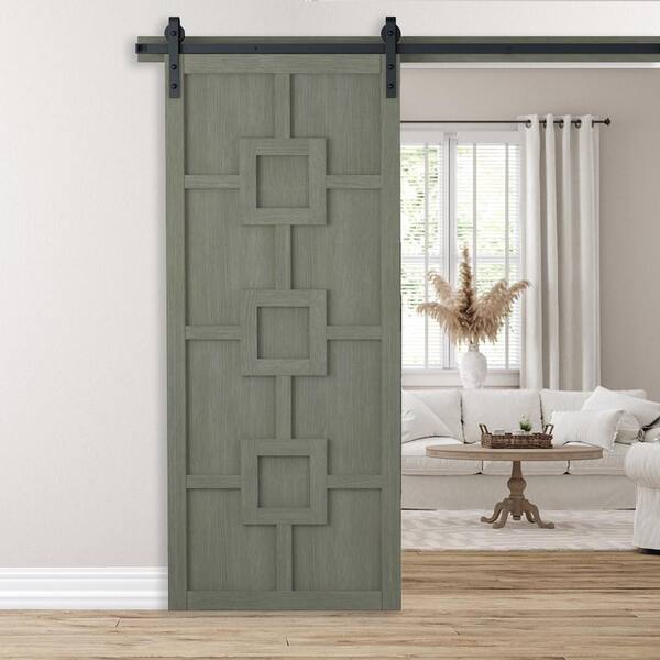 30 in. x 84 in. The Mod Squad Gauntlet Wood Sliding Barn Door with Hardware Kit in Black