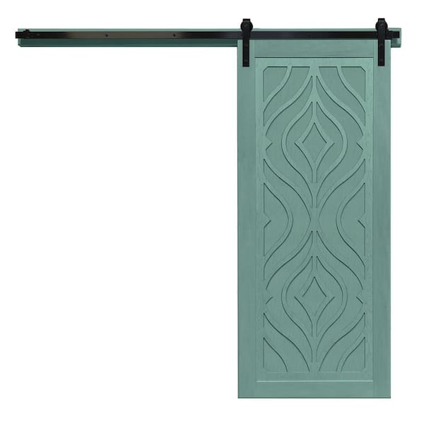 30 in. x 84 in. Zaftig Sway Caribbean Wood Sliding Barn Door with Hardware Kit in Black